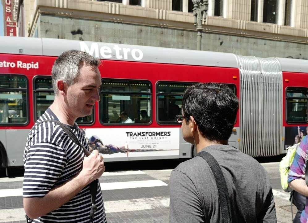 He also anticipates the shot coming from 30 feet away. While walking through a crowd down Hollywood Blvd, he’s not scanning through the crowd that’s five or ten feet from him, he’s looking at twenty five, thirty feet away and visualizing if there’s an opportunity to pair up couples or notice if there’s potentially anything interesting may come about. Learning about dead space and how heads sticking out of other people’s heads in a photo can make or break your images.