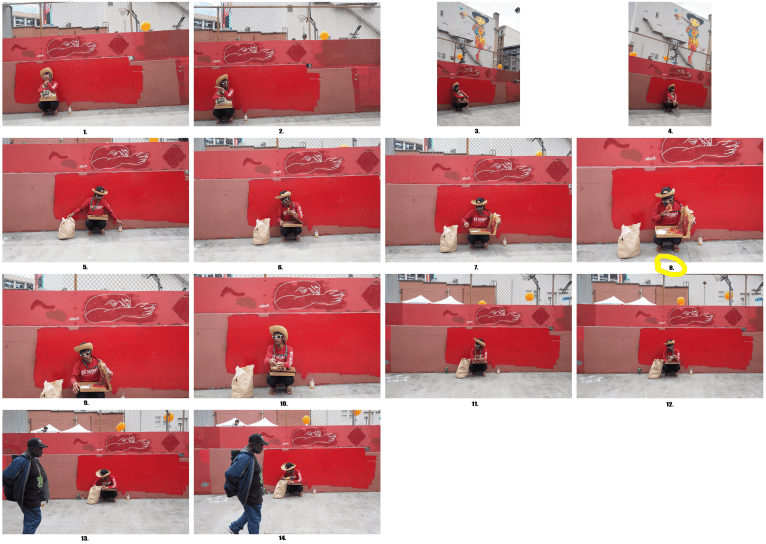As I was roaming around the area waiting for those interesting moments to happen, I for one did not notice the red wall. Probably at the time I was not as aware or experienced at seeing vibrant colors on the street as I am now. It wasn’t until I noticed how Jack and the other students were photographing the man in the red sweater that I went ahead and joined in. (You can watch here how I photographed RED at 5:45)